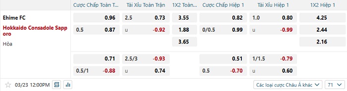 Tip kèo Châu Á full trận Ehime vs Hokkaido Consadole
