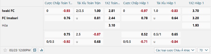 Tip kèo Châu Á hiệp 1 Iwaki vs Imabari