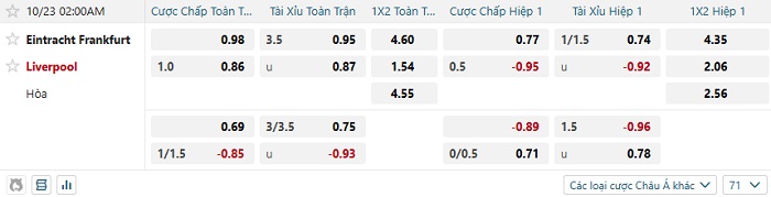 Tip kèo Châu Á full trận Frankfurt vs Liverpool