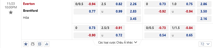 Tip kèo Châu Á hiệp 1 Everton vs Brentford