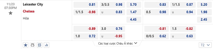 Tip kèo Châu Á full trận Leicester vs Chelsea