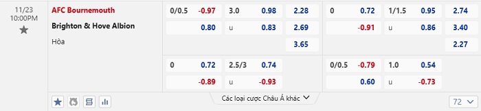 Tip kèo Châu Á full trận Bournemouth vs Brighton