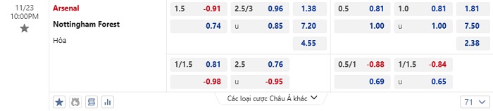 Tip kèo Châu Á full trận Arsenal vs Nottingham