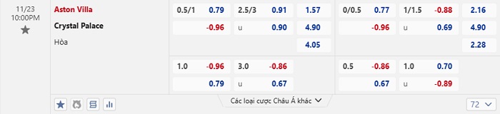 Tip kèo Châu Á full trận Aston Villa vs Crystal Palace
