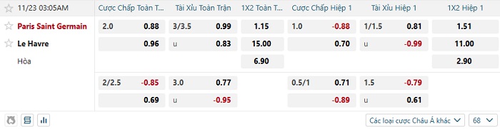 Tip kèo Châu Á hiệp 1 PSG vs Le Havre