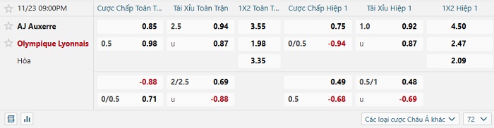 Tip kèo Châu Á full trận Auxerre vs Lyon