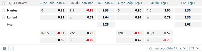 Tip kèo Châu Á full trận Nantes vs Lorient