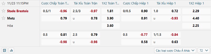 Tip kèo Châu Á hiệp 1 Brestois vs Metz