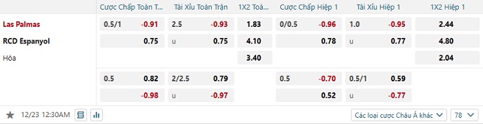 Tip kèo tỷ số Las Palmas vs Espanyol