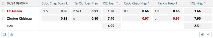 Tip kèo Châu Á hiệp 1 Astana vs Zimbru Chisinau