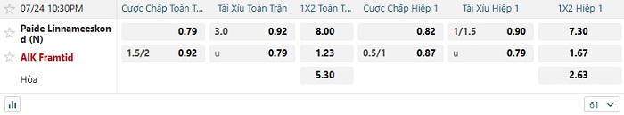 Tip kèo Châu Á hiệp 1 Paide Linnameeskon vs AIK Framtid