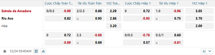 Tip kèo bóng đá trận Estrela vs Rio Ave  03h45 ngày 24/12/2024 VĐQG Bồ Đào Nha