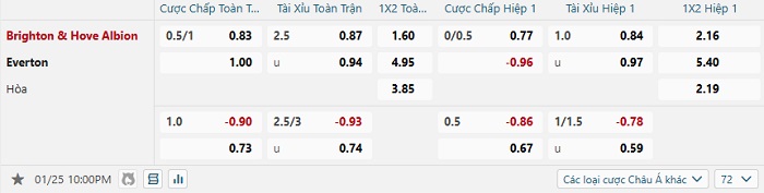 Tip kèo Châu Á hiệp 1 Brighton vs Everton
