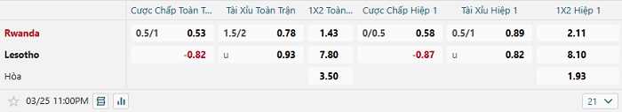Tip kèo Châu Á full trận Rwanda vs Lesotho