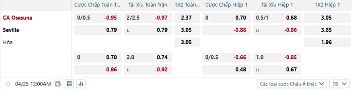 Tip kèo bóng đá trận Osasuna vs Sevilla – 00h00 ngày 25/04/2025 VĐQG Tây Ban Nha