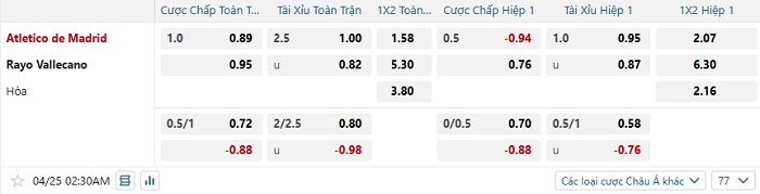 Tip kèo Châu Á hiệp 1 Atletico Madrid vs Vallecano