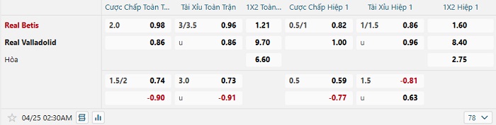 Tip kèo Châu Á full trận Betis vs Valladolid
