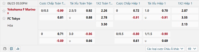 Tip kèo Châu Á hiệp 1 Yokohama F Marinos vs FC Tokyo