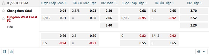 Tip kèo Châu Á full trận Changchun Yatai vs Qingdao West