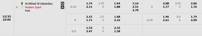 Tip kèo Châu Á full trận Al Sakandary vs Modern Sport