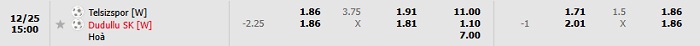 • Dự đoán tỷ số hiệp 1: Telsizspor 0 – 2 Dudullu