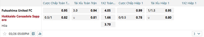 Tip kèo Châu Á full trận Fukushima vs Hokkaido Consadole