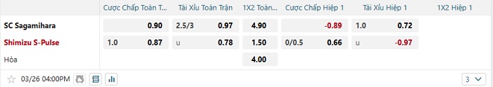 Tip kèo Châu Á full trận Sagamihara vs Shimizu S-Pulse