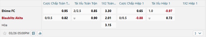 Tip kèo Châu Á hiệp 1 Ehime vs Blaublitz Akita