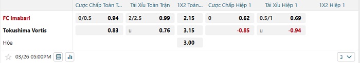 Tip kèo Châu Á full trận Imabari vs Tokushima Vortis