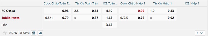 Tip kèo Châu Á hiệp 1 FC Osaka vs Jublio Iwata