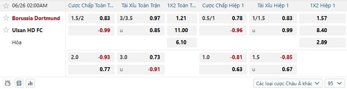 Tip kèo Châu Á hiệp 1 Dortmund vs Ulsan Hyundai