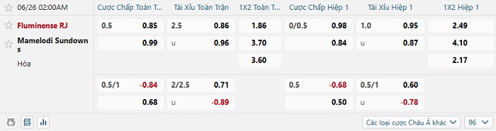 Tip kèo Châu Á full trận Fluminense vs Mamelodi Sundowns