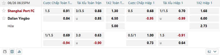 Tip kèo Châu Á full trận Shanghai Port vs Dalian Yingbo