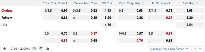 Tip kèo Châu Á full trận Chelsea vs Fulham