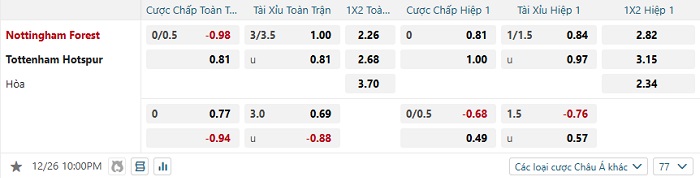 Tip kèo Châu Á full trận Nottingham vs Tottenham
