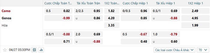 Tip kèo Châu Á full trận Como vs Genoa