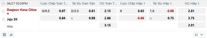 Tip kèo Châu Á hiệp 1 Daejeon Hana vs Jeju SK