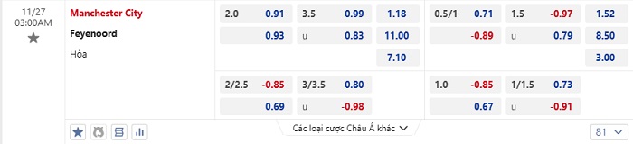 Tip kèo Châu Á full trận Man City vs Feyenoord