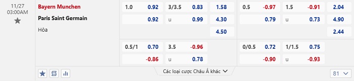 Tip kèo Châu Á full trận Bayern Munich vs PSG