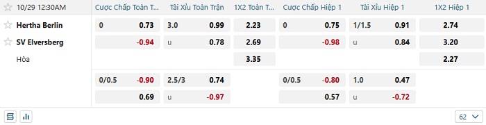 - Dự đoán tỷ số hiệp 1: Hertha Berlin 0 – 0 Elversberg