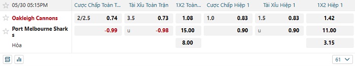 Tip kèo Châu Á hiệp 1 Oakleigh Cannons vs Port Melbourne