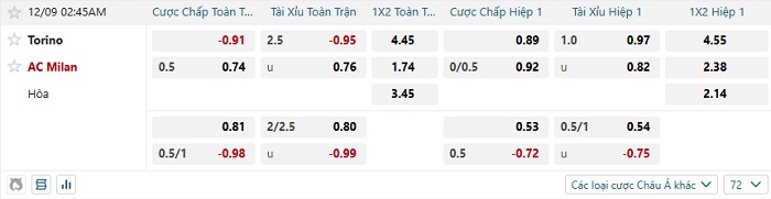 Soi kèo châu Á, kèo Torino vs AC Milan