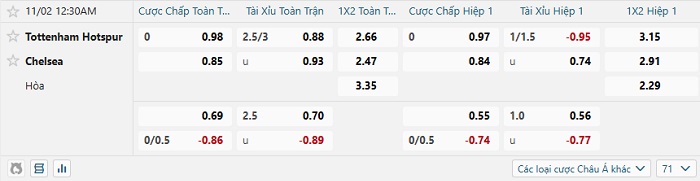 Bảng tỷ lệ kèo nhà cái Tottenham vs Chelsea