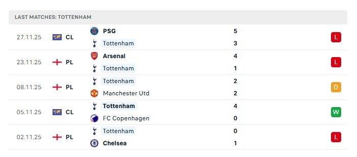 - Phong độ gần đây Tottenham