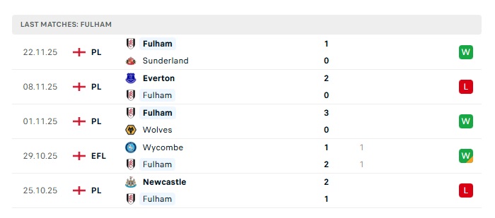 - Phong độ gần đây Fulham