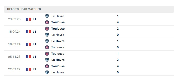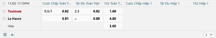 - Kèo tỷ số H2 Toulouse vs Le Havre: 2-0