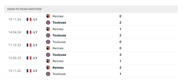 - Kèo tỷ số H2 Toulouse vs Rennes: 0-0