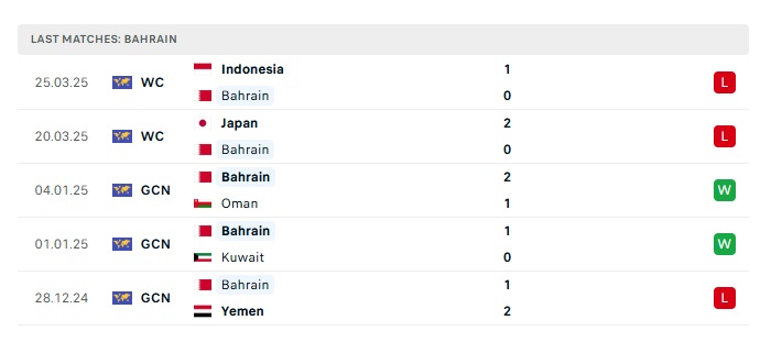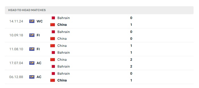 Lịch sử đối đầu Trung Quốc vs Bahrain