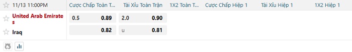- Kèo tỷ số H1 UAE vs Iraq: 0-0