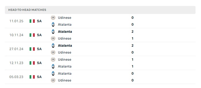 - Kèo tỷ số H2 Udinese vs Atalanta: 0-0